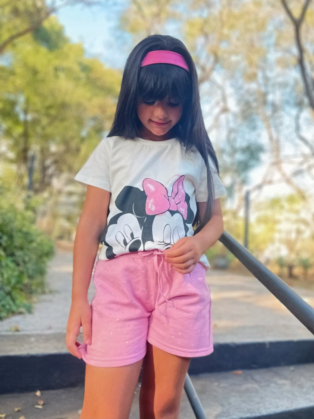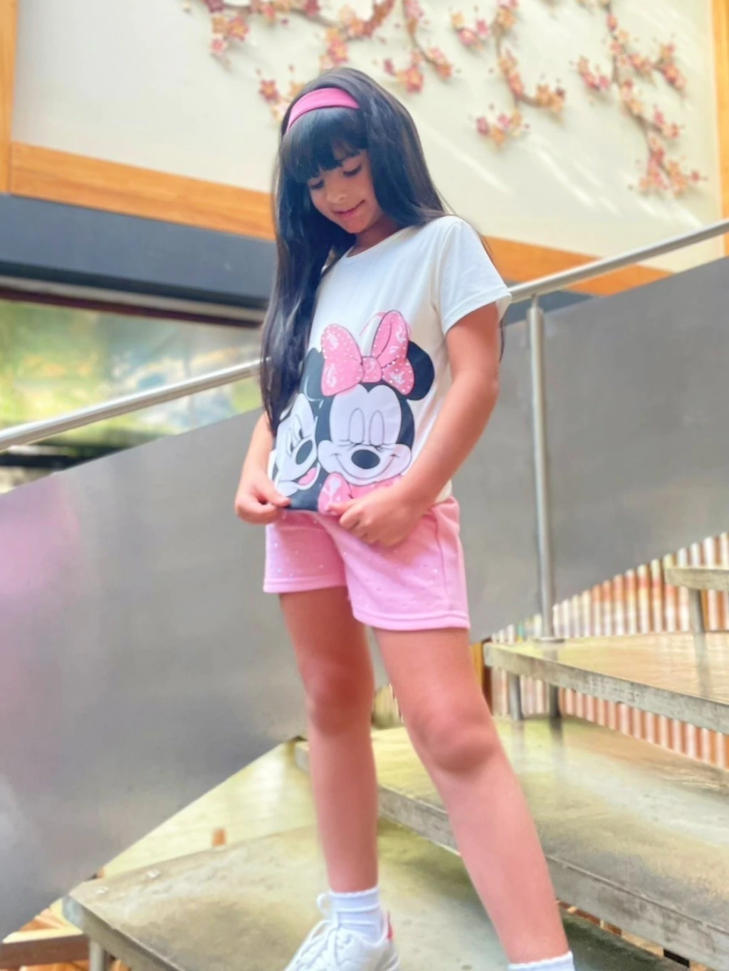 👚 Blusinha em malha 100% algodão, super macia, com a **Minnie e Mickey** no melhor estilo *love* – e o rosa dominando, claro! 💕